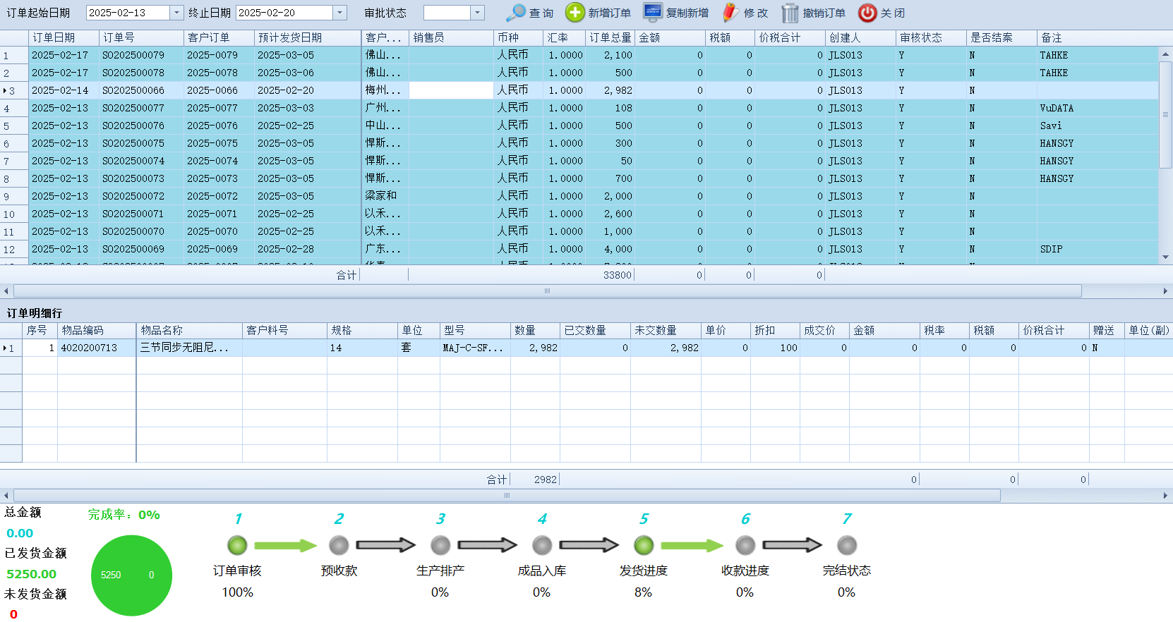 订单追踪,查询订单处理进度,包括订单状态跟踪、订单进度查询、订单的排产情况、订单的发货清单;